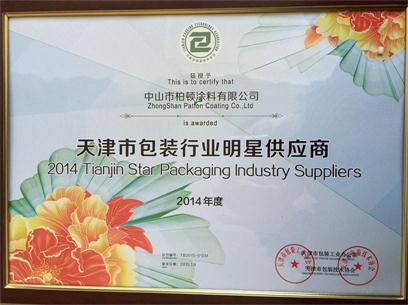 Zhongshan Patton coating company in 2014 won the best supplier title in Tianjin package industry.