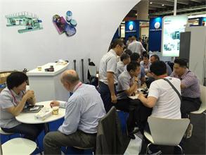 Negotiate with customers at the Guangzhou Cannex Exhibition.